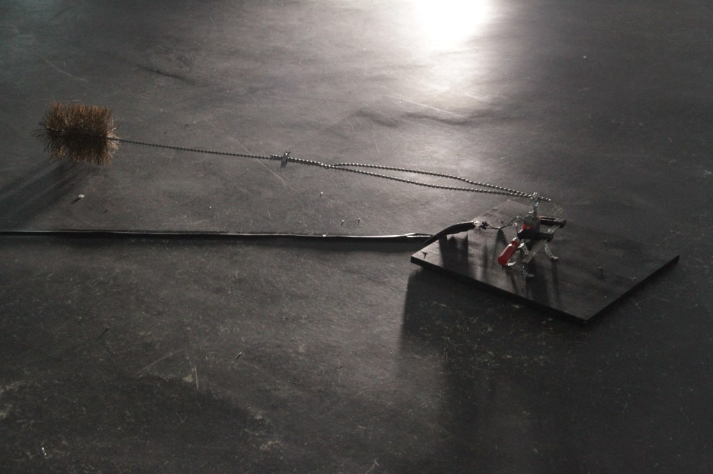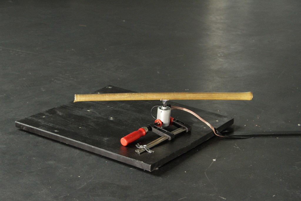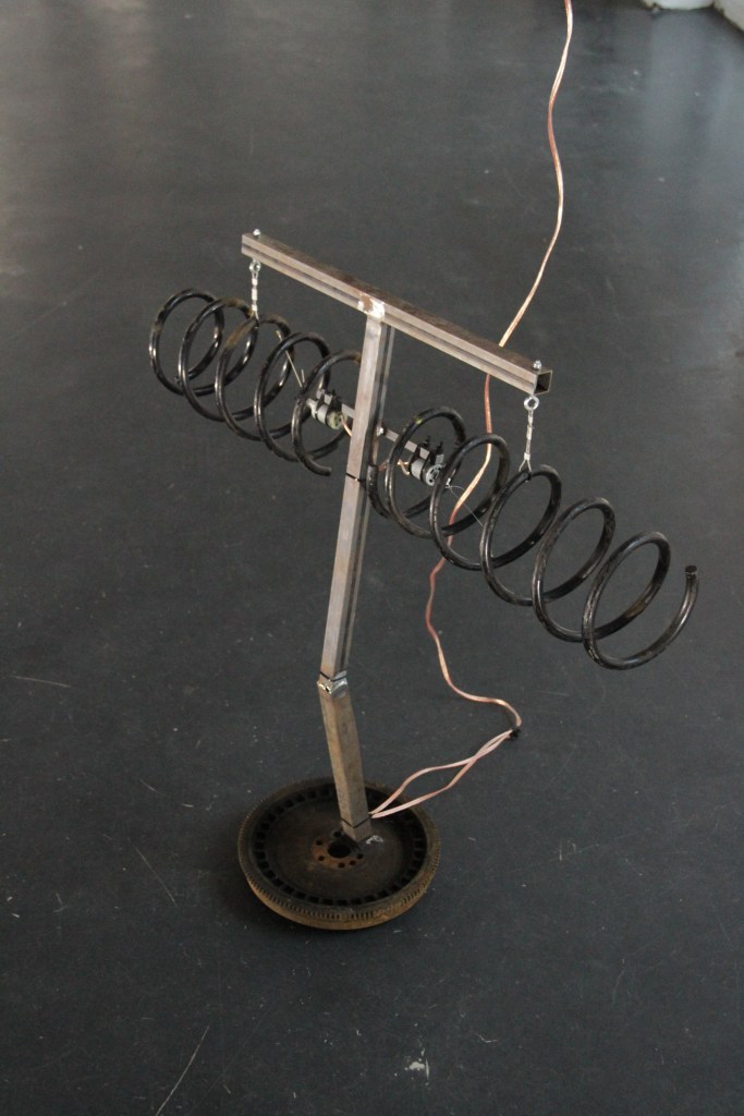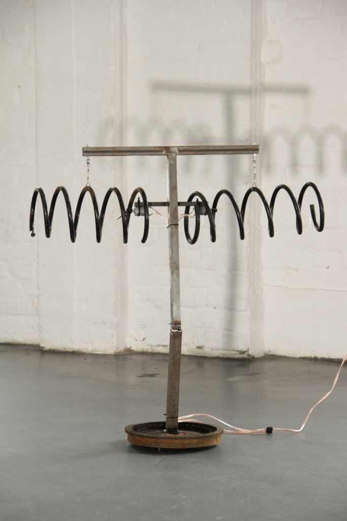 However, the movement produces not only sound, but also shapes, it plasticizes. The sculpture and the sound fall into one in the room and in the space.