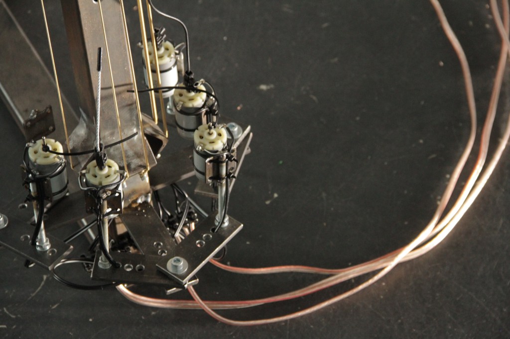 The sound / signal of the guitar is amplified and sent in the same direction to 16 motors.